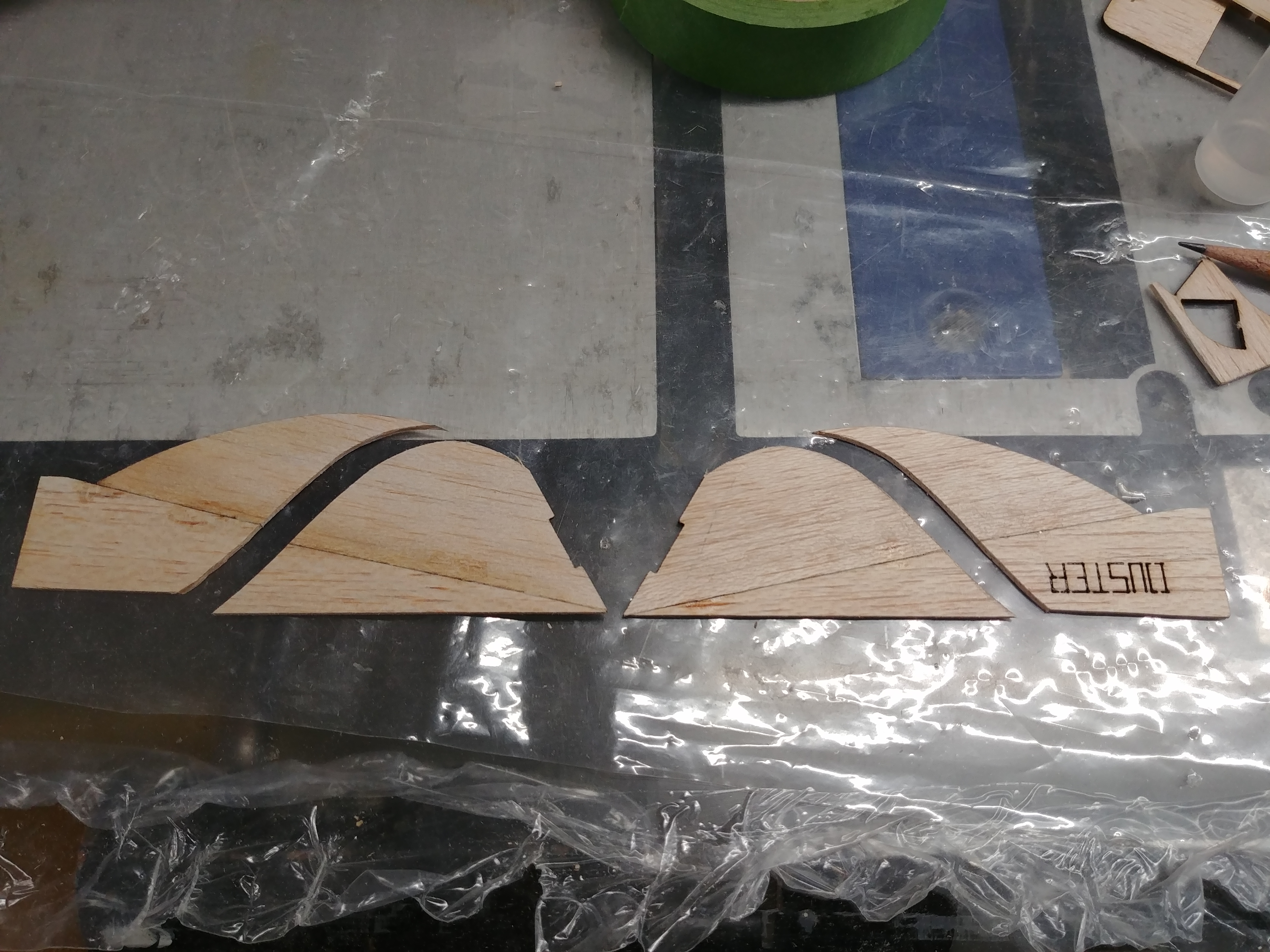 The kit comes with 4 wing caps so you can glue 2 on each wing tip and sand a radius on them. I decided to use one on each side glued flat and then cut a little wedge from scraps to reinforce it.