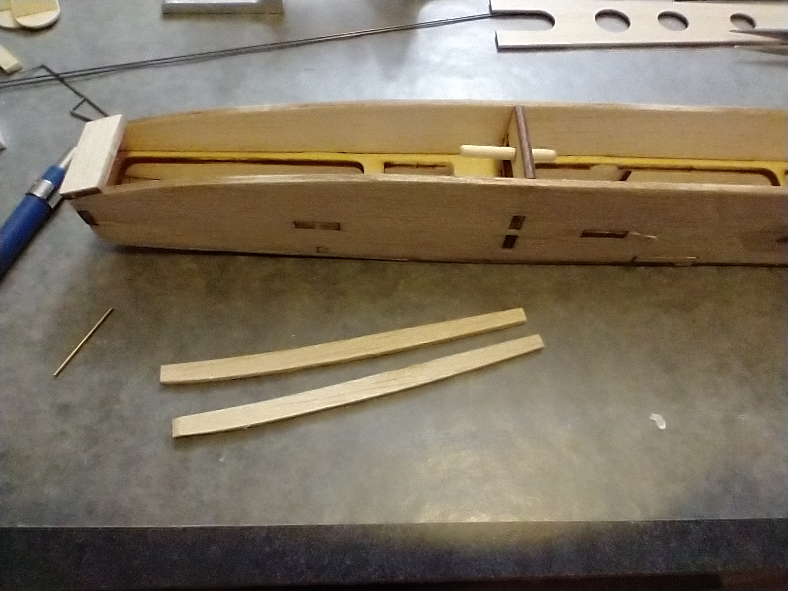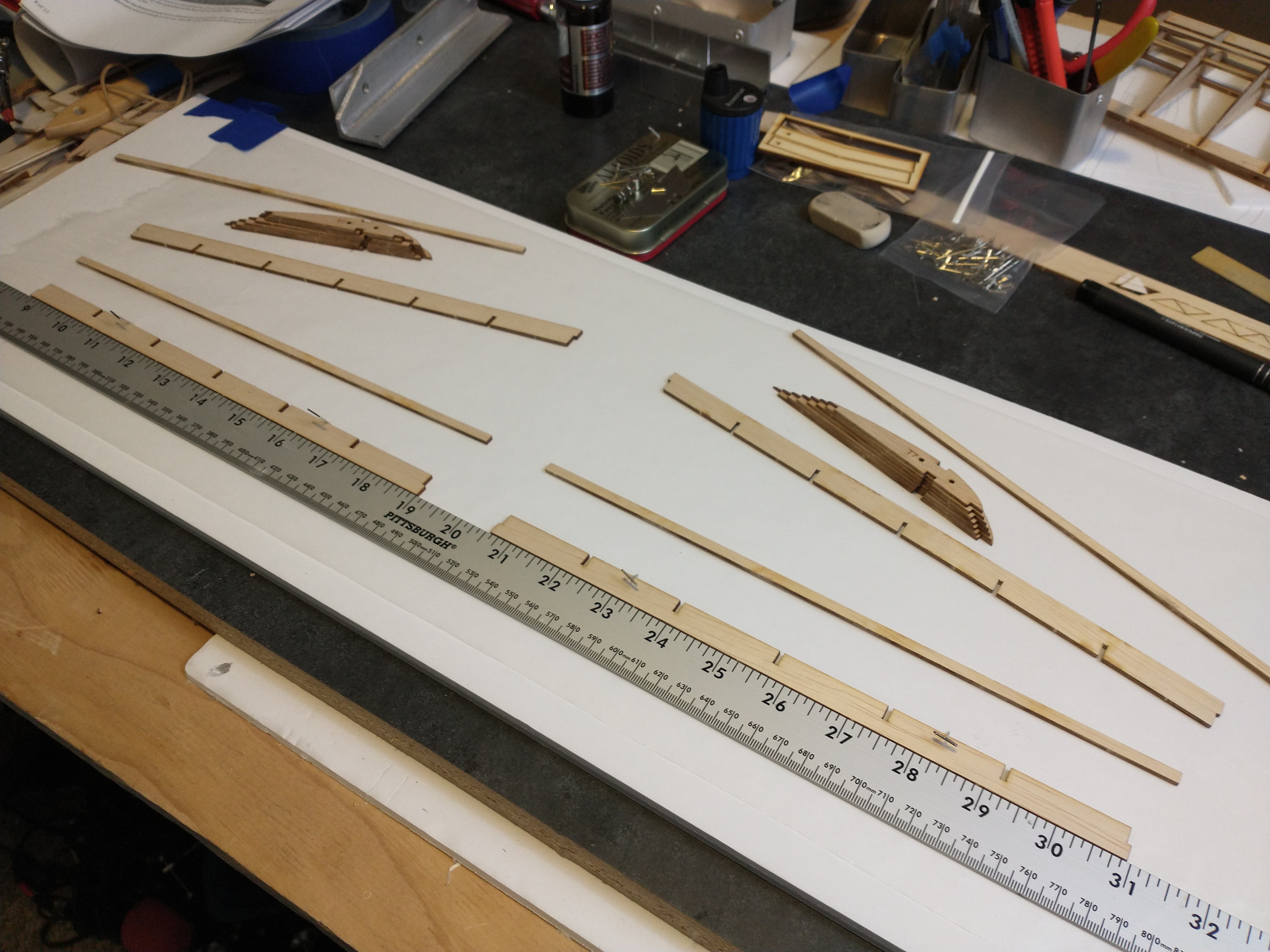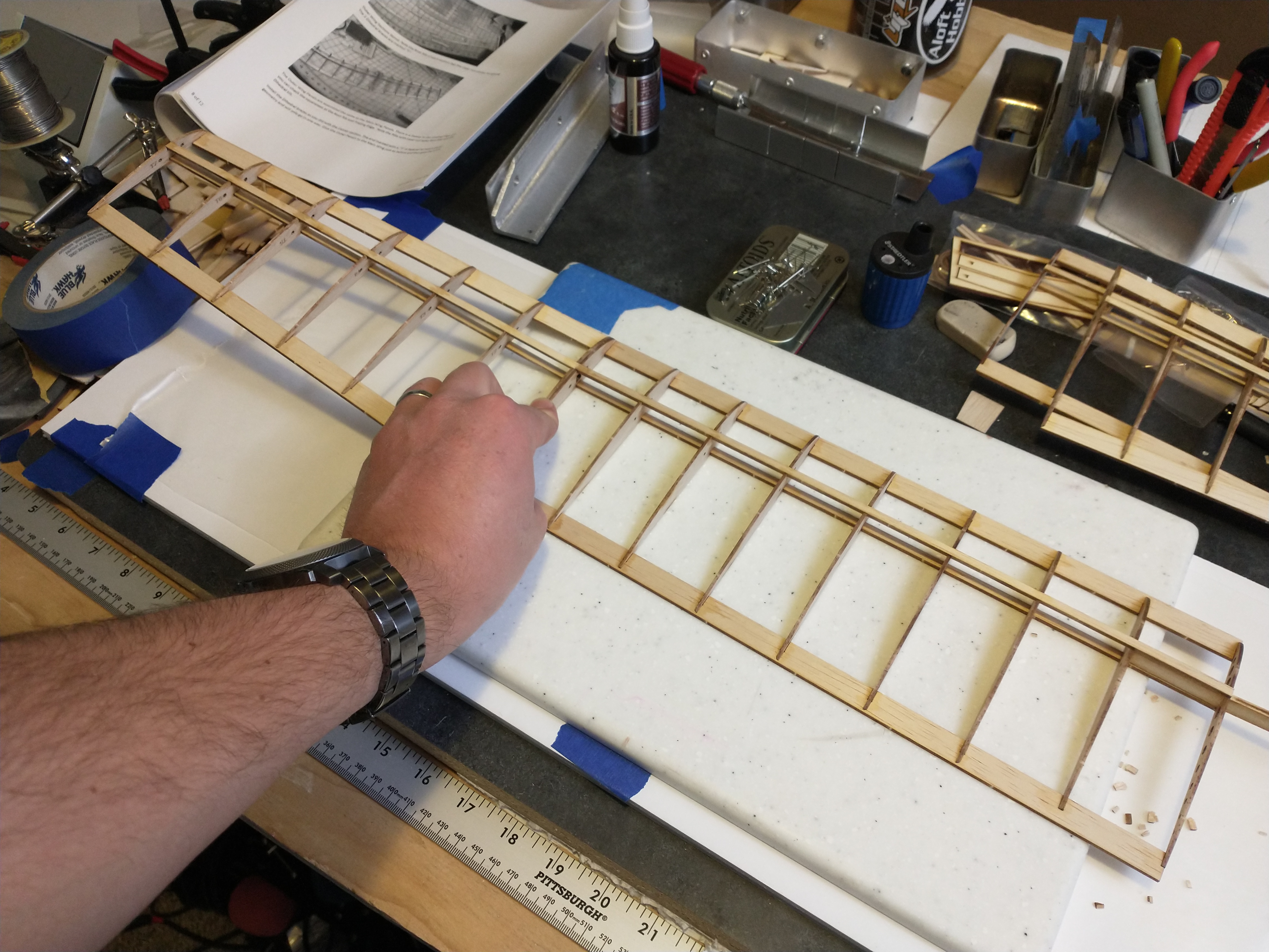 I still have some shaping to do on the wing tips, the sheer webbing to glue in, and the top sheeting of the center section. More on that later though.