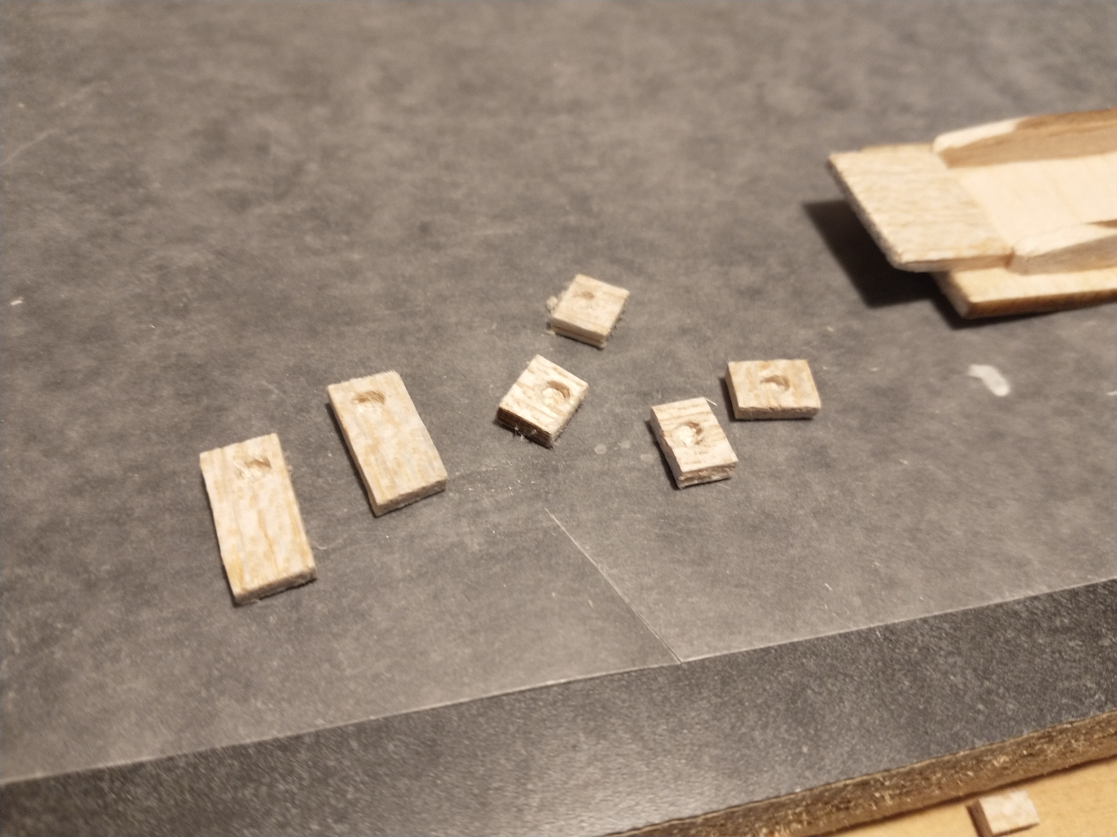 To hold the magnets in place, I cut some small squares of balsa from the tail surfaces scrap. This balsa is thicker and heavier, which made it easier to drill 1/8" holes into for the magnets. I then took a stick of 3/8" square balsa and trimmed off a small section for a post. The magnet would then be glued into the small square of balsa then directly on top of the post that was then glued into the fuselage.