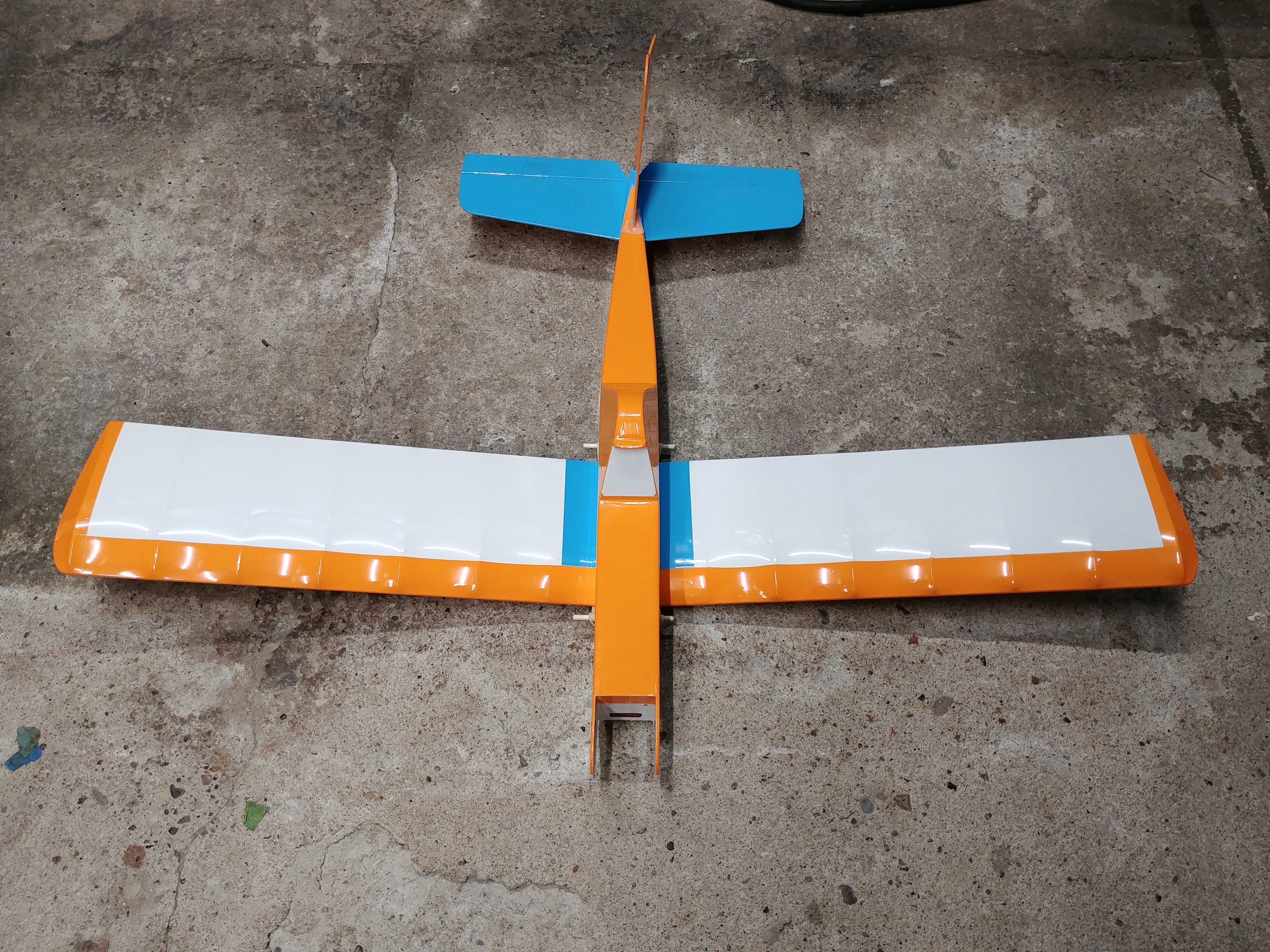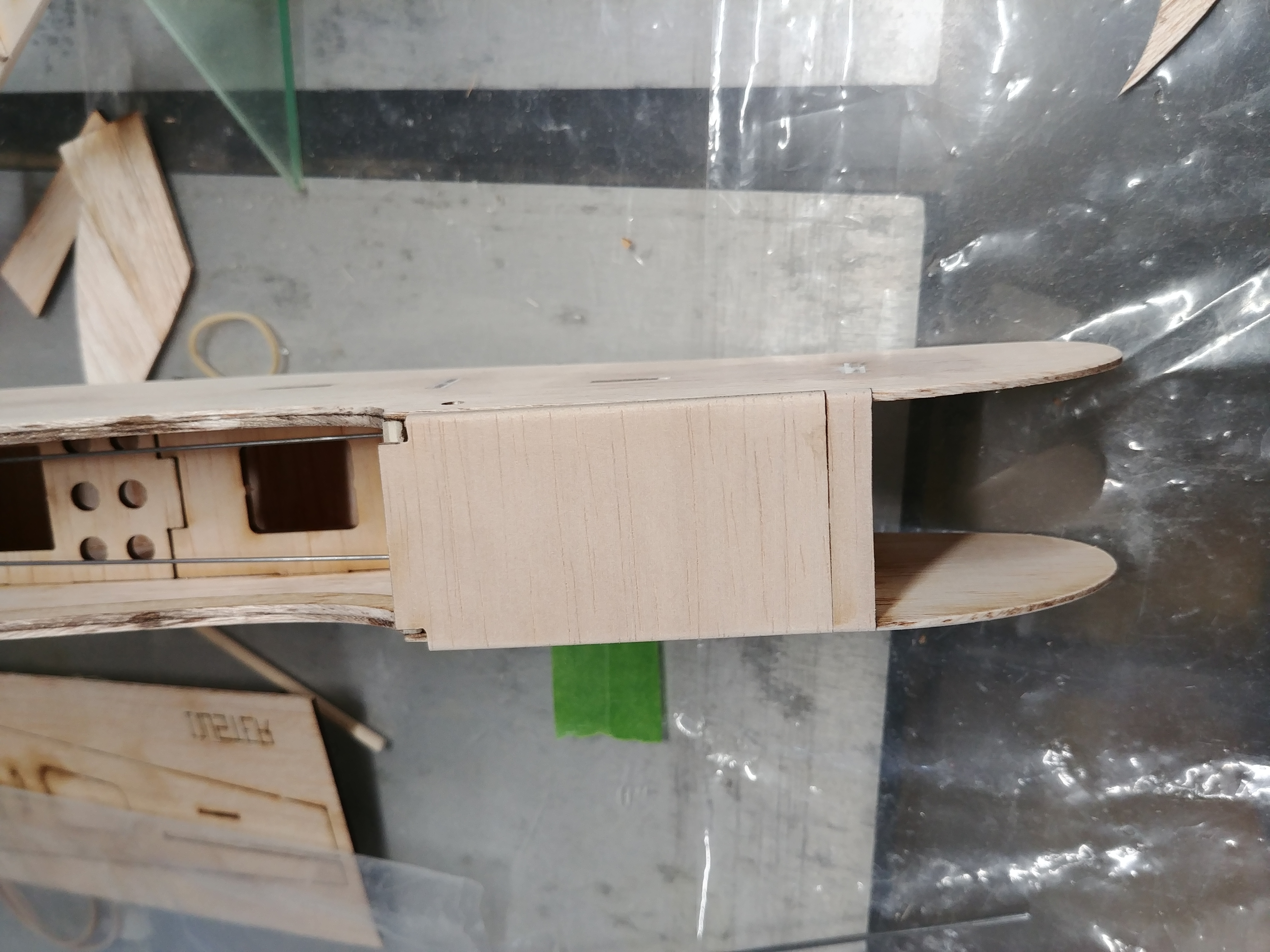 Some final sanding and the fuselage is done. I decided to install the pushrods with the z bends in the slots before I cover. Some tape will hold them inplace and I should be able to fish them out after covering. Also I used a thin scroll saw blade to slip in the pushrod slots and clearnce them a ...