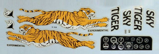 image file of the decal sheet for an original Goldberg Sky Tiger (can be sent to graphics companies for scale replication to apply to the WN Sky Tiger 250)