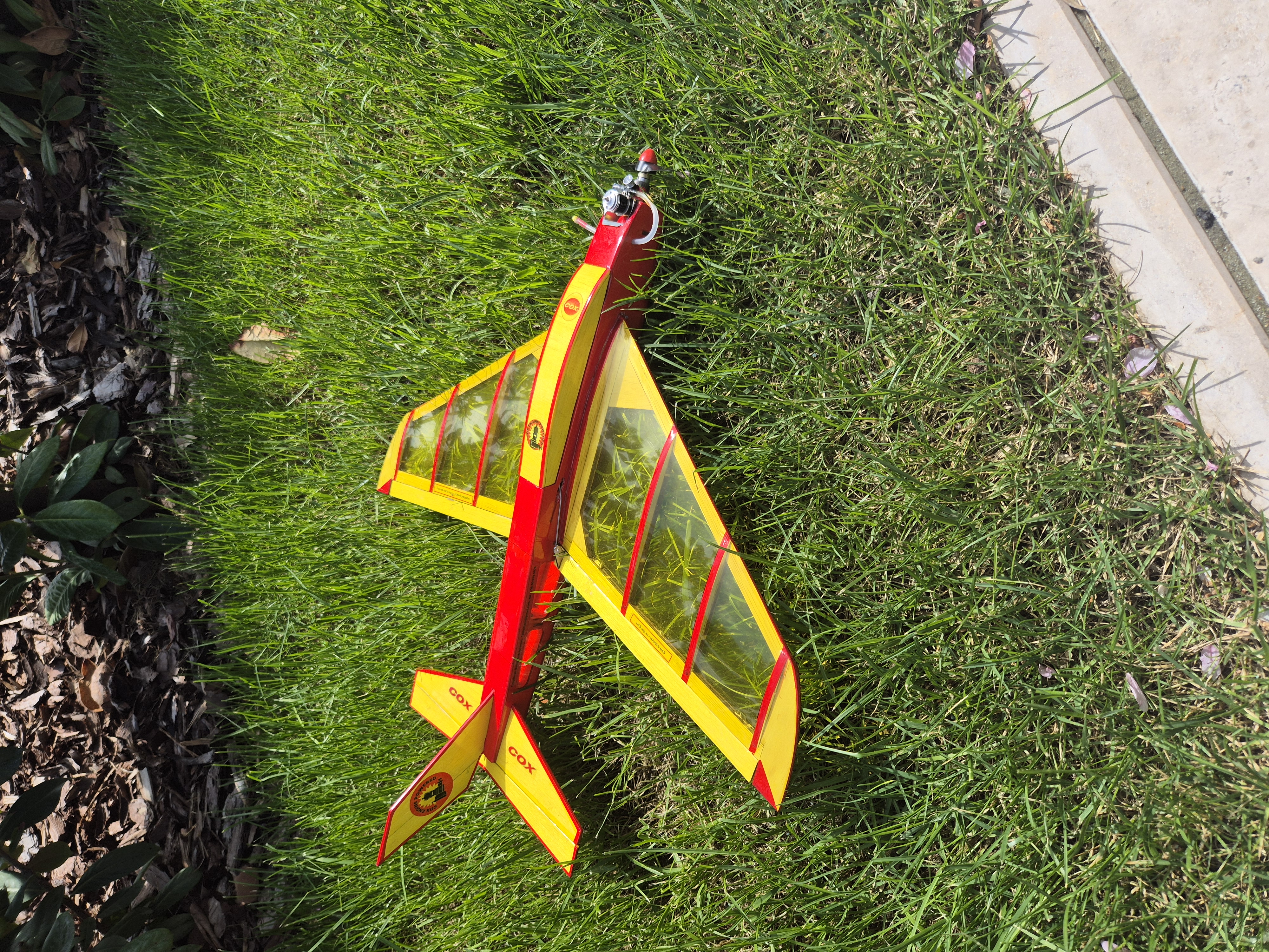 The design comes with 2 hatches, one on the bottom, that I finally decided to omit for the sake of retaining structural strength of the fuselage, and the canopy is also removable; I will keep it in place with a tiny but strong magnet..I made it to control through 3 channels, elevator, ailerons and throttle ring on the COX TeeDee020..color schemes to resonate with that of the Tee Dee 020 engine...the transparent film leaves the skeleton half naked like an actress on the red carpet of an Oscar gala..