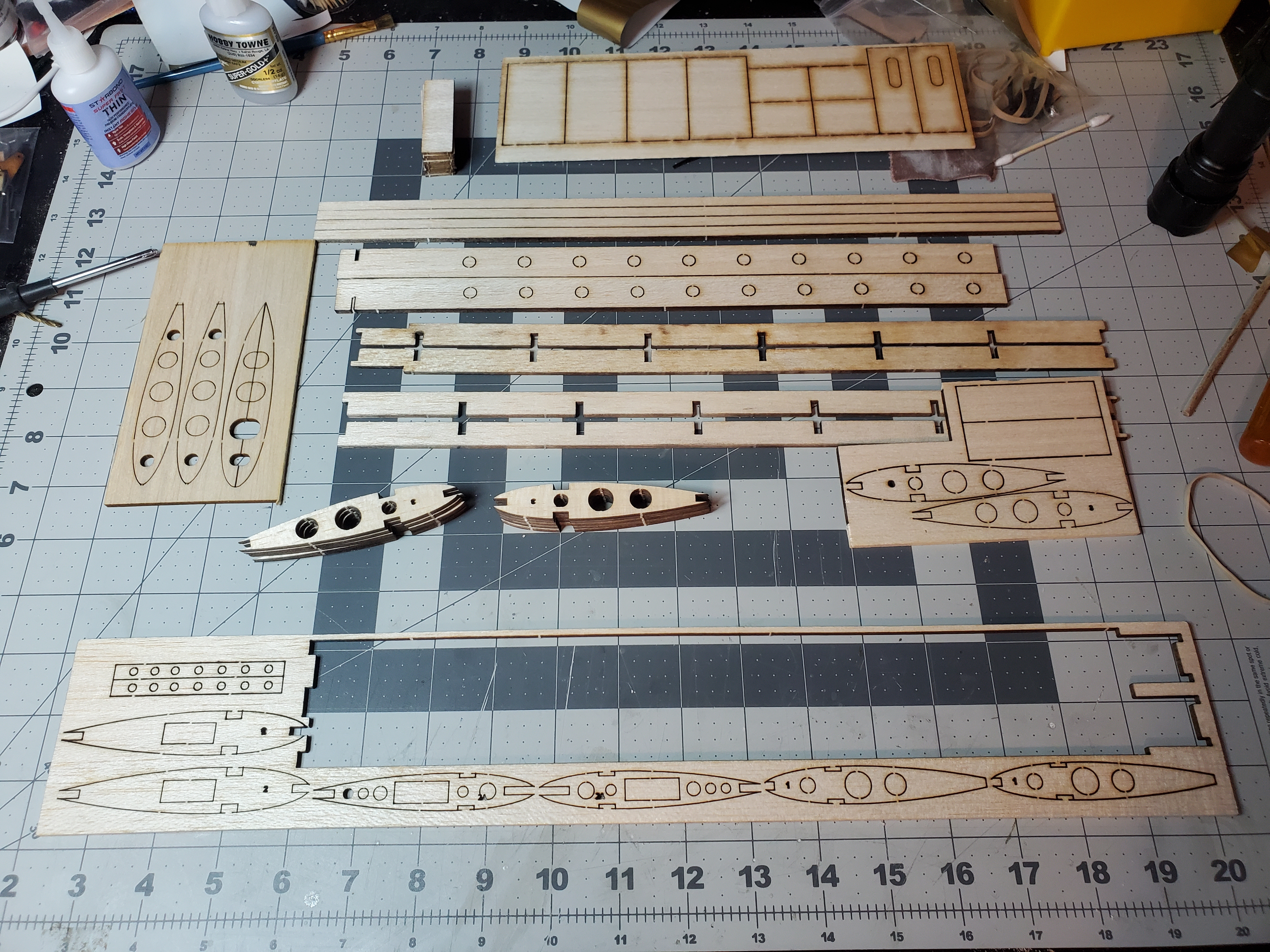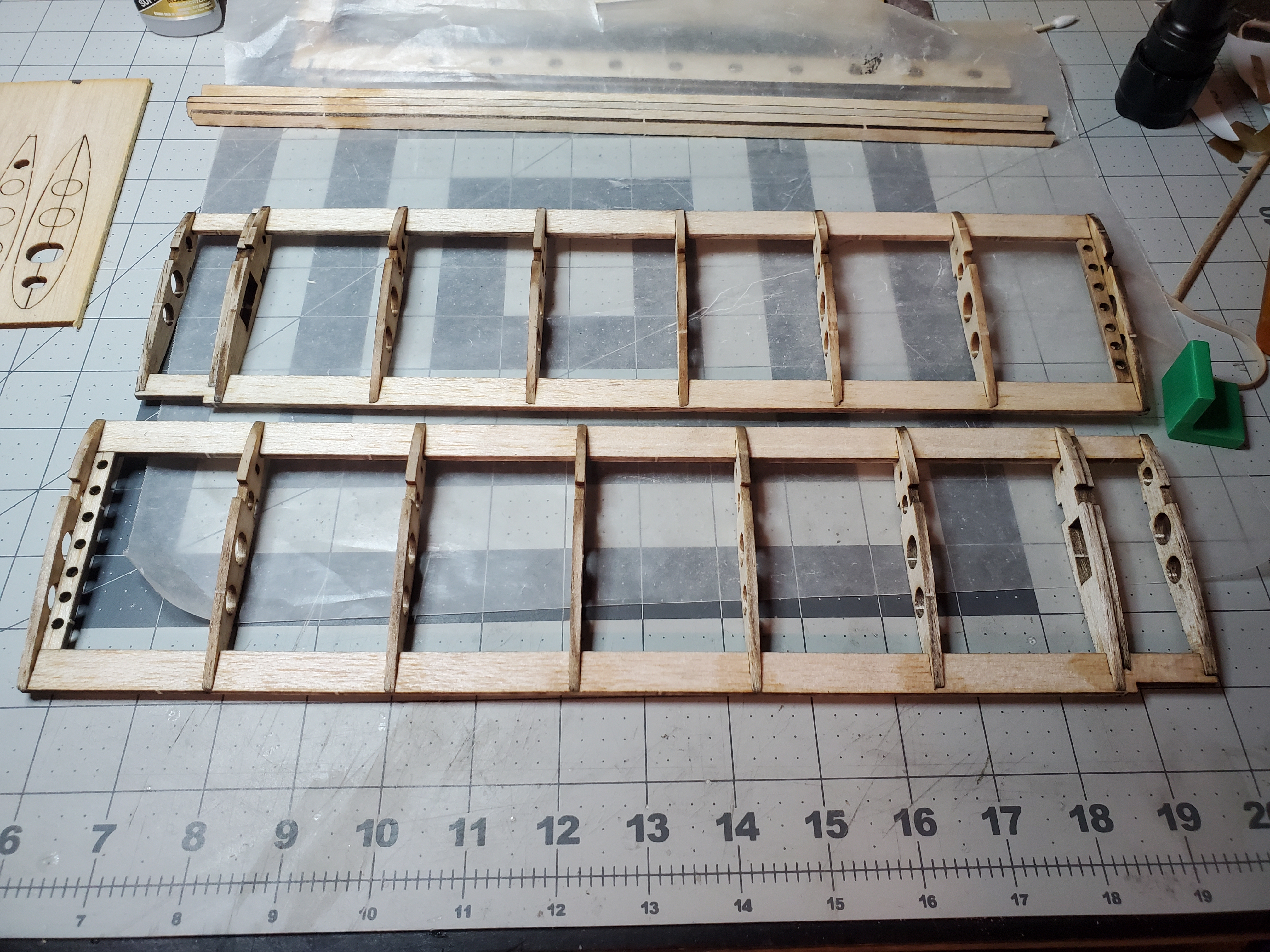 My intent is to transform an S-Tee kit from relaxing park flyer into a pattern/stunt plane by replacing the standard flat bottomed wing with a zero-dihedral fully symmetrical wing designed and produced by Doug Hart at my request specifically for this experiment. I may also try enlarging the control surfaces to enhance 3d flying characteristics. Here's how that turned out. Thanks, Doug, for the custom cut.